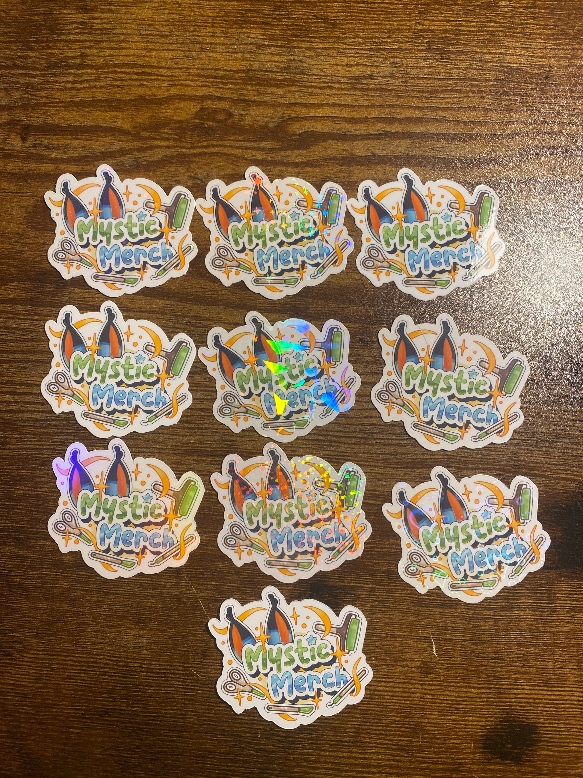 Enthalten sind 10 Sticker (5×5 cm) mit dem MysticMerch Logo, jeweils in einer anderen Folie, damit du Haptik, Glanz und besondere Effekte direkt vergleichen kannst. Perfekt, um dein Lieblingsmotiv für die Zukunft auszuwählen!